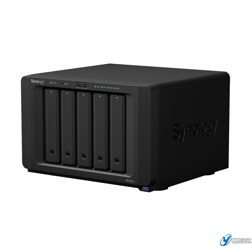 Synology DiskStation DS1517+ 是一種 5 槽式 NAS,配備內(nèi)置 AES-NI 硬件加密引擎的四核 CPU。它隨附四個 1GbE LAN 端口,可安裝一個 10GbE 網(wǎng)絡接口卡 (NIC) 或一個雙 M.2 SSD 適配器卡,從而能通過 SSD 緩存提高網(wǎng)速或提升性能。
