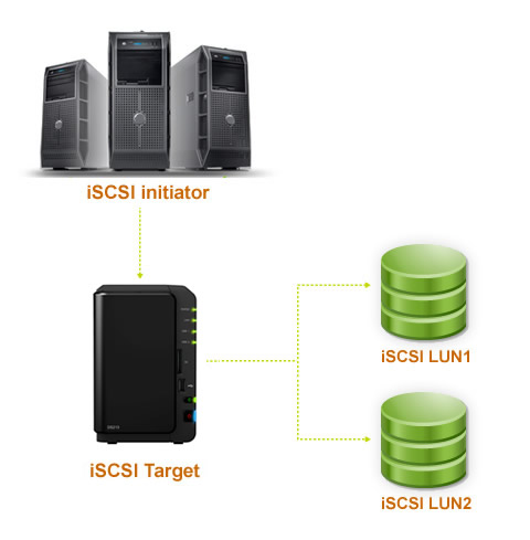 iSCSI Target:它概念類似于一種聯(lián)機接口,當iSCSI啟動器聯(lián)機至iSCSI Target時,iSCSI Target上連結的所有LUN也會聯(lián)機至客戶端的操作系統(tǒng)。