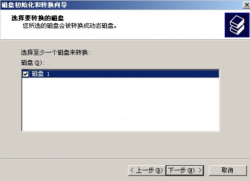 選擇要轉換的磁盤,下一步
