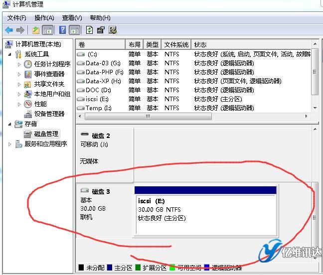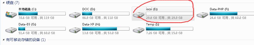 然后,在客戶端(以windows 7為例),看一下,如何連接ISCSI,請(qǐng)?jiān)L問(wèn)《windows server 2008R2部署ISCSI》。