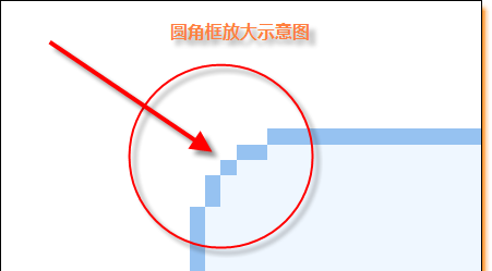 純CSS方式實現(xiàn)圓角框的原理在網(wǎng)絡(luò)上已經(jīng)有很多人詳細(xì)解說了,下面這個示意圖是我將其中的一個圓角進(jìn)行放大后的效果。