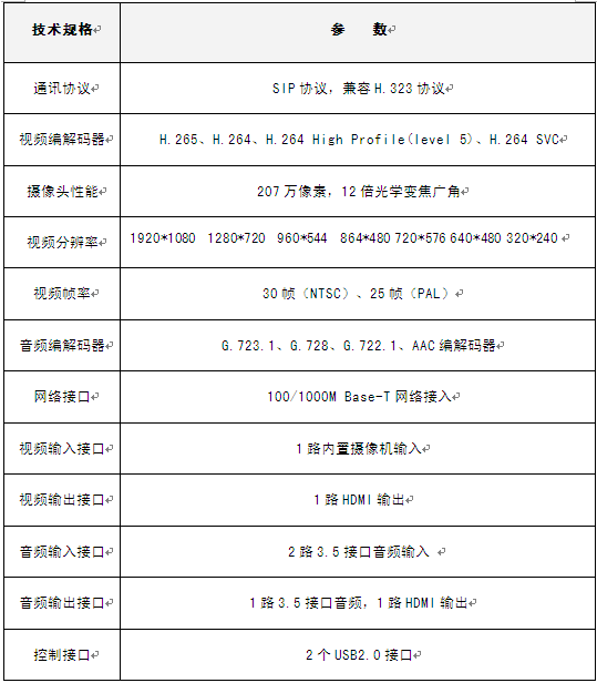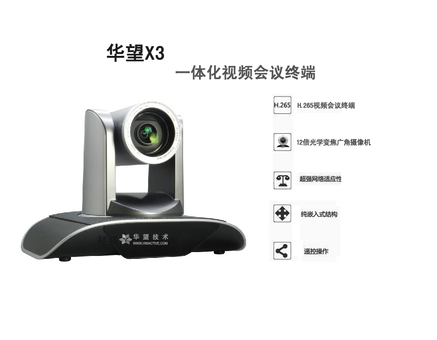 產(chǎn)品特性:內置高清視頻會議終端+12倍光學變焦廣角攝像機,安裝部署更簡單;業(yè)界首推H.265編解碼,降低40%帶寬占用;1080P高清分辨率;支持遙控器操作
